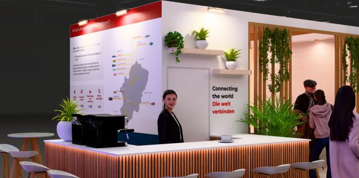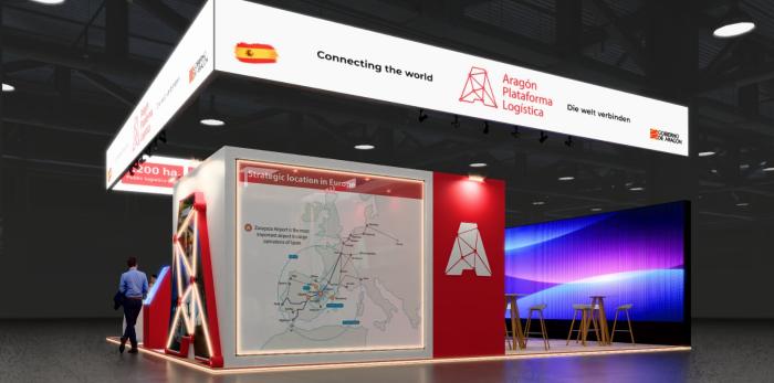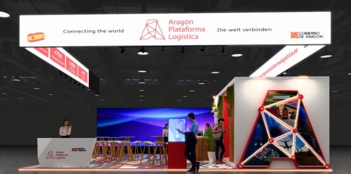 Imágenes recreadas del stand de Aragón Plataforma Logística en Munich. DGA.